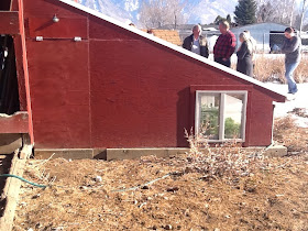 This is the floor. Now, he (and I for that matter) live in an area that has lots of rocks under the soil, and many of them are huge. I remember driving up to the site of our current home while it was under construction. The basement had just been dug and it looked like somewhere that Fred Flintstone and Barney would hang out. Caleb informed us that he had heavy equipment come and dig down 8 feet, then back-filled 4 feet of just rock. This is necessary for something called "Thermal Mass".